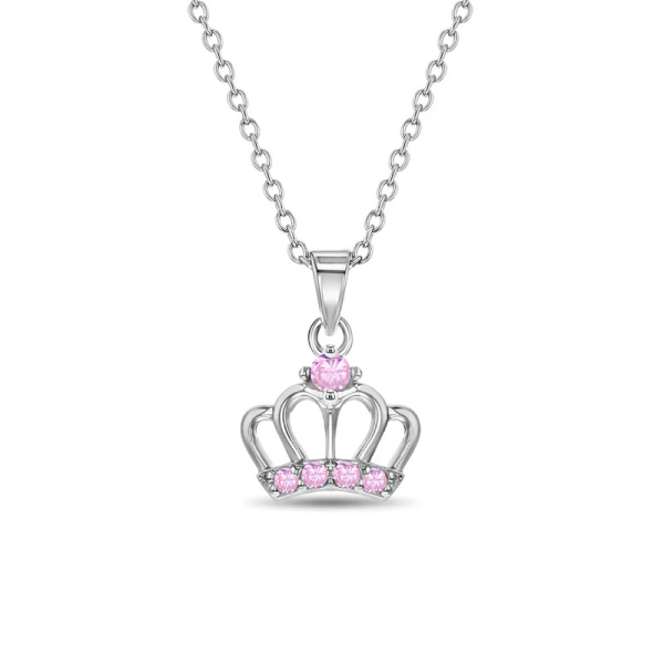 Шукаєте особливий подарунок для своєї маленької принцеси? Це прекрасне намисто у вигляді корони принцеси має спрацювати! Підвіска у вигляді корони зі срібла 925 проби оздоблена яскравими круглими рожевими фіанітами вздовж основи для милого та вишуканого вигляду. Ця королівська підвіска йде в комплекті з регульованим ланцюжком зі срібла та акуратно запаковане у маленьку подарункову коробку, що робить вибір подарунка легким!