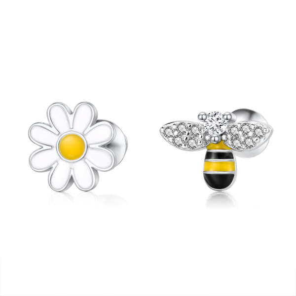 Неординарні дитячі сережки виконані у вигляді бджілки та квіточки. Це яскрава та ексклюзивна прикраса не залишить маленьку модницю без уваги оточуючих. І хоча сережки невеликого розміру, але мають яскраві кольори та вишуканий блиск. Ювелірний виріб створений зі срібла 925-ї проби з родієвим покриттям та вставками ювелірної емалі. Використовується зручний тип застібки – закрутка.